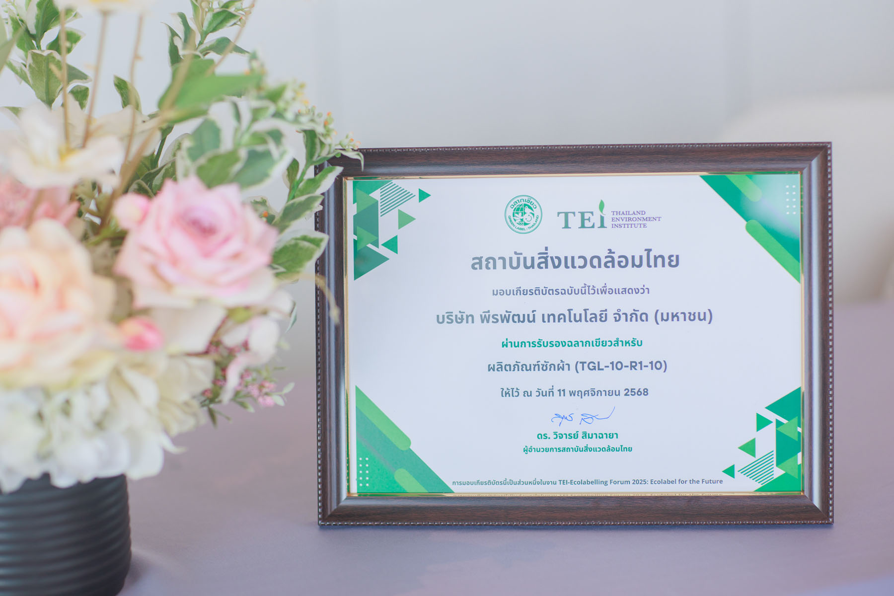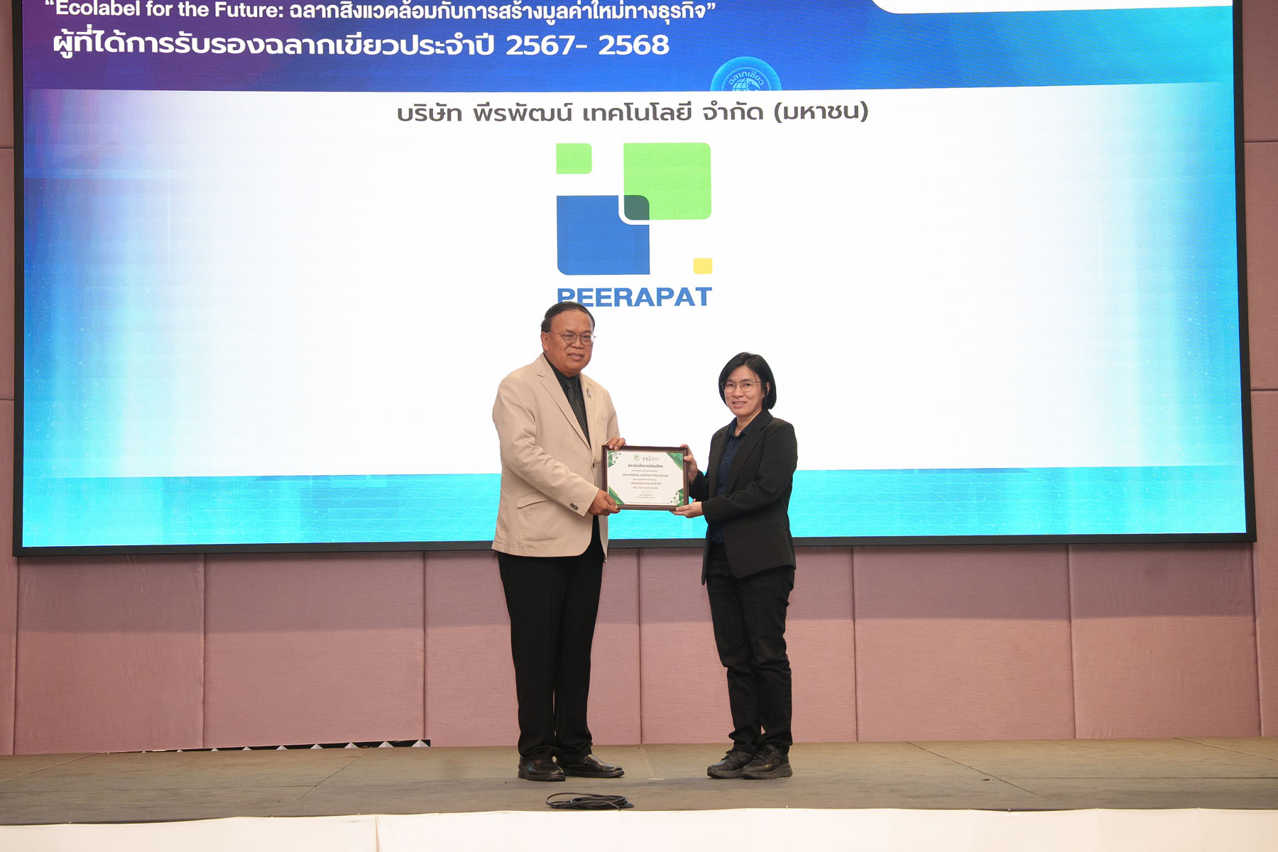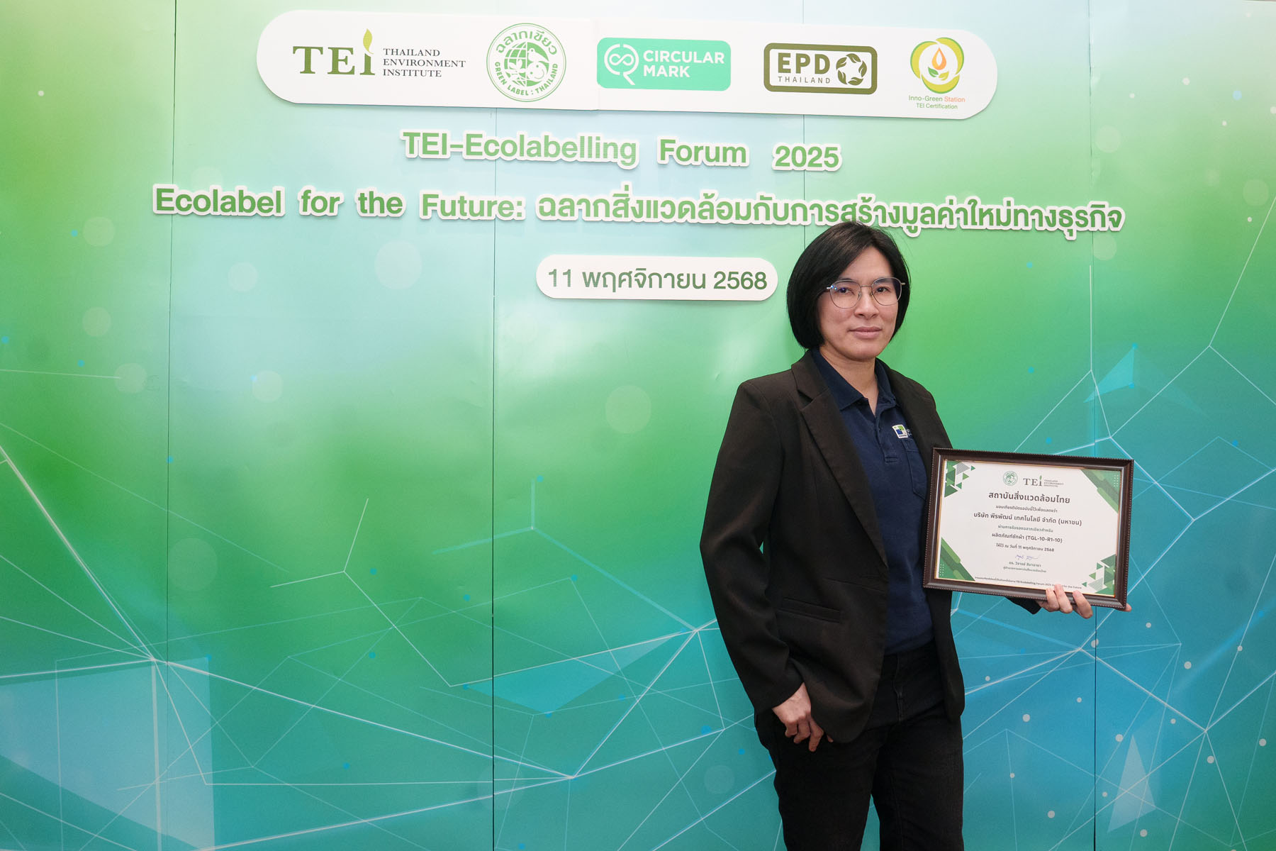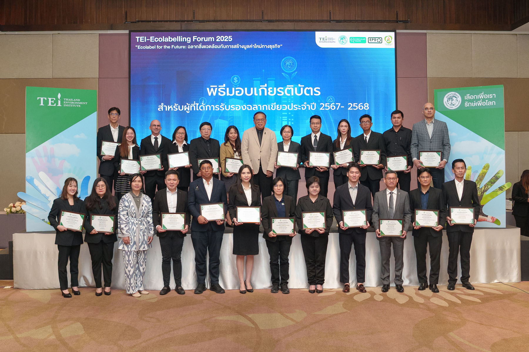 ภายในงาน “TEI-Ecolabelling Forum 2025” จัดโดย สถาบันสิ่งแวดล้อมไทย (TEI) ภายใต้แนวคิด “Ecolabel for the Future: ฉลากสิ่งแวดล้อมกับการสร้างมูลค่าใหม่ทางธุรกิจ” ณ โรงแรม ทีเค. พาเลซ แอนด์ คอนเวนชั่น กรุงเทพฯ โดยมี ดร.วิจารย์ สิมาฉายา ผู้อำนวยการสถาบันสิ่งแวดล้อมไทย เป็นผู้มอบเกียรติบัตรฉลากเขียว เพื่อเชิดชูเกียรติแก่ผู้ประกอบการที่มุ่งมั่นดำเนินงานจนได้รับการรับรองมาตรฐานฉลากสิ่งแวดล้อม กลุ่มผลิตภัณฑ์ฉลากเขียว ประจำปี 2567-2568